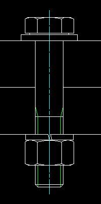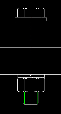 Kolejnym krokiem jest narysowanie śruby wraz z podkładkami -- proponuję narysowanie śruby według Polskiej Normy. Pozwoli to na dobranie podkładek oraz nakrętki według tej samej normy oraz znacznie uprości proces samego projektowania. Normy takie można znaleźć np. pod adresem http://infona.pol.lublin.pl.