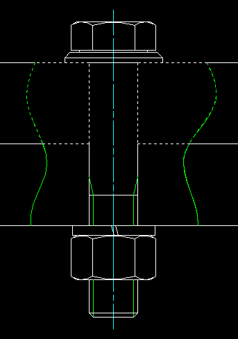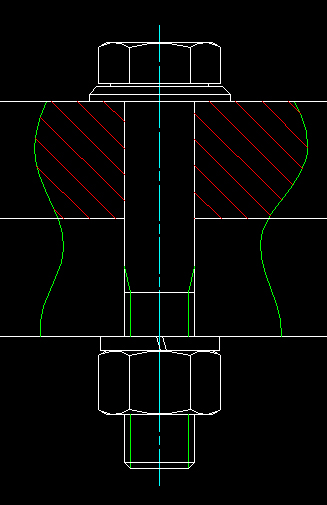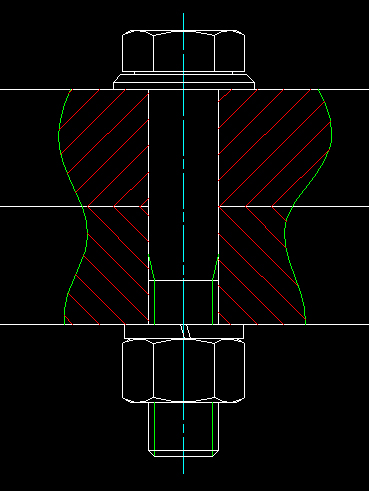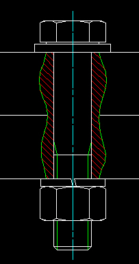 Rys. 4. Połączenie śrubowe z wyrwaniem -- pokażę, w jaki sposób można wykonać takie wyrwanie z zastosowaniem narzędzi AutoCAD-a
