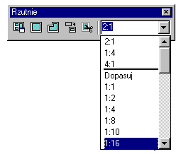 Pasek ten pozwala na zarządzanie rzutniami, definiowanie nowych rzutni oraz ustalanie skali w już zdefiniowanych rzutniach.