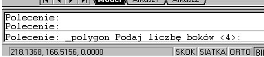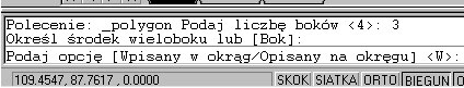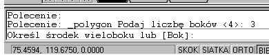 Teraz mamy do wyboru: czy chcemy podać punkt wstawienia środka naszego wieloboku, czy też długość jego boku. Ja zdecyduję się na podanie środka, ponieważ jest to opcja wymagająca wykonania jeszcze paru poleceń -- wybranie wskazania długości boku przez naciśnięcie klawisza B i wciśnięcie klawisza Enter pozwala na podanie dwóch punktów oznaczających długość boku i mamy narysowany wielobok.