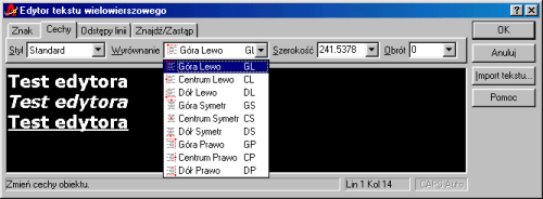 i wskazujemy obszar paragrafu. Po tych zabiegach otwiera się okno Edytora tekstu wielowierszowego -- klikamy przycisk Import tekstu ... W pokazanym okienku wybieramy interesujący nas plik tekstowy i klikamy OK.