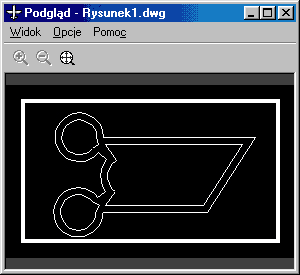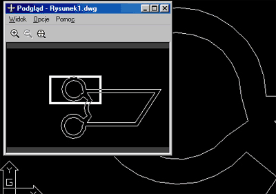 Mając już przykładowy rysunek, możemy pozwolić sobie na jego dokładne obejrzenie przy pomocy narzędzi, które zostały omówione w lekcji 11. poprzedniego cyklu dla początkujących -- czyli ZOOM, PAN. Jednak oglądanie przy pomocy tych narzędzi jest w pewnym sensie niepełne. AutoCAD oferuje jeszcze inne sposoby śledzenia zawartości rysunku, a jednym z nich jest Podgląd. Narzędzie to pozwala na stałe śledzenie zawartości rysunku przy pomocy specjalnego okna dialogowego, które pozwala na wykonywanie dynamicznych zbliżeń do wybranych fragmentów edytowanego rysunku. Uff! Teraz może przejdźmy do praktyki. Aby uruchomić narzędzie podglądu, klikamy ikonę przedstawioną poniżej: