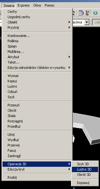 Zmiana wybieramy opcję Operacje 3D, a następnie Lustro