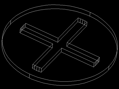 Następnie zaznaczamy obiekt, który będzie kopiowany przy pomocy lustra i wskazujemy trzy punktu należące do płaszczyzny będącej płaszczyzną odbicia. Całą operację powtarzamy trzykrotnie. Teraz powinniśmy otrzymać następujący element.