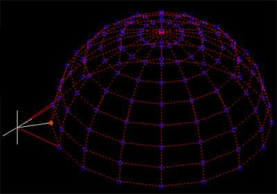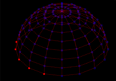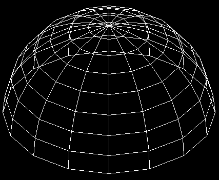 Zaczniemy od narysowania obiektu siatkowego o nazwie Kopuła. Nadajmy mu średnicę równą 100 jednostkom i standardową gęstość równą 16 segmentom wzdłużnym i 8 segmentom poprzecznym.