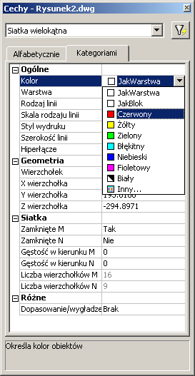 Następnie zmieńmy standardowy kolor obiektu na np. czerwony przy pomocy okienka dialogowego Cechy.