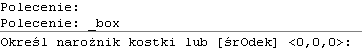 Teraz AutoCAD prosi o wskazanie pierwszego narożnika kostki - proponuję kliknięcie w dowolnym miejscu przestrzeni.