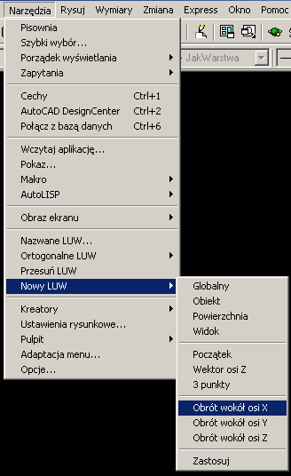 wystarczy dokonać obrotu LUW-a o 90 stopni względem osi X.