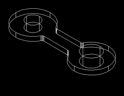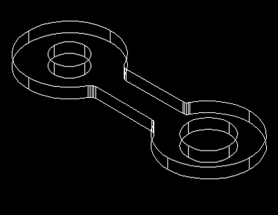 Na zakończenie połączymy poznane do tej pory wiadomości w celu uzyskania jednego modelu 3D. Proponuję cofnąć ostatnią operację, a następnie wykonać standardowe wyciągnięcie bez przewężenia. Następnie dodajmy do rysunku dwa walce usytuowane w środkach okręgów i mające średnice mniejsze od średnic okręgów oraz posiadające większą wysokość od naszego wyciągnięcia.
