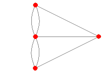 JAK TO SIĘ ZACZĘŁO, CZYLI MOSTY KRÓLEWIECKIE Prawie każdy wykład z Teorii Grafów zaczyna się tak: W osiemnastym wieku mieszkańcy Królewca lubili spacerować po mostach na rzece Pregole, których mieli w mieście siedem. Plan mostów pokazuje rysunek. ![]() Ale takie zwykłe spacerowanie po jakimś czasie im się znudziło, i zaczęli zastanawiać się, czy jest taka trasa spacerowa, która przechodzi przez każdy most dokładnie raz, żadnego nie omija, i pozwala wrócić do punktu wyjścia. Nie potrafili sami rozwiązać tego problemu, więc napisali do znanego już wtedy matematyka Leonharda Eulera. Euler pokazał, że nie istnieje rozwiązanie tego zadania. (Jeśli wejdzie się po raz trzeci na wyspę, nie ma jak z niej wyjść.) Można tę sytuację przedstawić jako graf o wielokrotnych krawędziach: ![]() Trzeba w tym grafie znaleźć cykl Eulera, czyli cykl przechodzący przez wszystkie wierzchołki i wszystkie krawędzie tego grafu, ale przez każdą krawędź tylko raz. W opublikowanej w 1736 roku pracy Euler sformułował pierwsze twierdzenie teorii grafów, które dziś zapisujemy następująco: