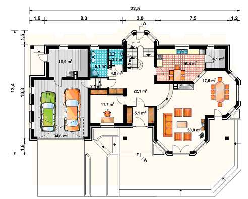 3. Rysunek rzutu parteru domku jednorodzinnego