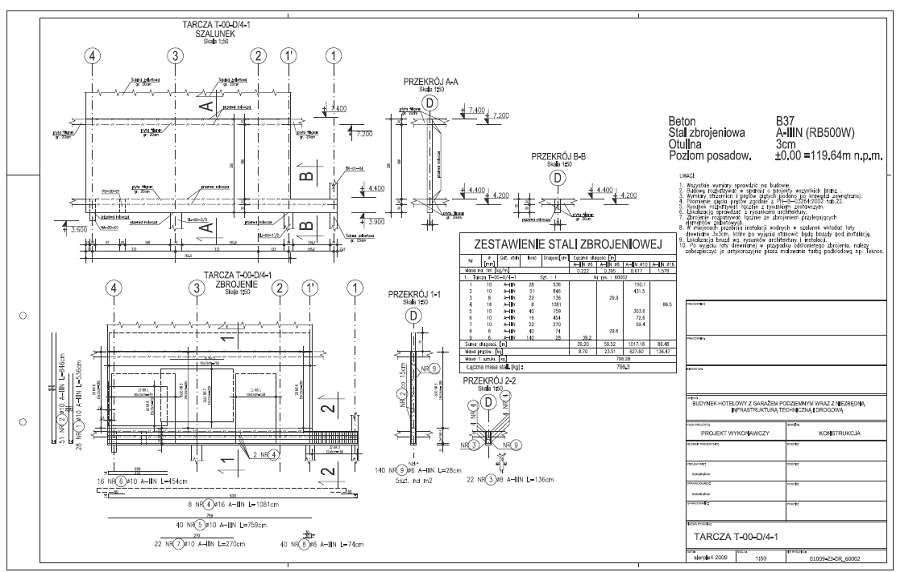 1. Rysunek konstrukcji żelbetowej