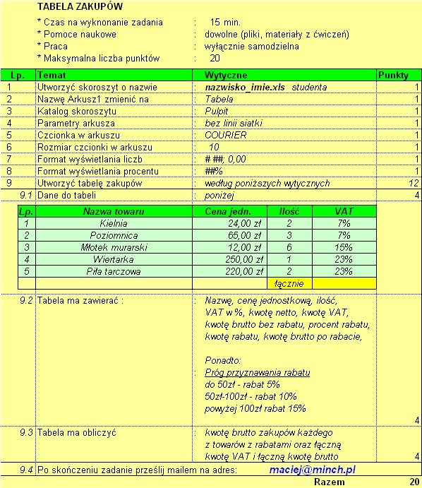 TEST 3 - ZESTAWIENIE MATERIAŁÓW